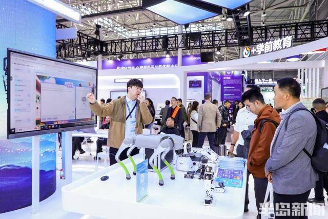 10月24日,记者来到青岛世博城国际展览中心现场,各大展台围绕人工智能、教育信创、团体标准、低空经济、急救教育等行业热点,纷纷推出各类高科技设备。在科大讯飞展台,观众可谓“人山人海”。他们推出的新一代AI黑板吸引了大量教育工作者的关注。它通过护眼技术与沉浸声场保障学生视听健康,让教室各位置均能清晰观看与聆听;构建了以语音为核心、融合触控与视觉的全自然人机交互体系,教师“一句话”即可调用资源、生成内容,极大提升教学效率。