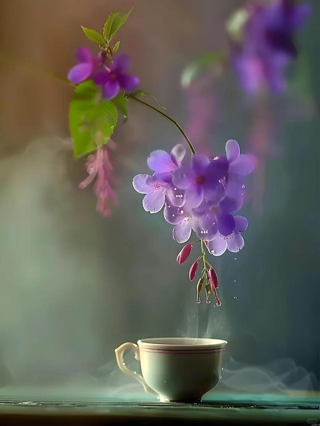 茶烟轻轻升起,逐渐脱离了地面的束缚,向着白云层飘去。它似乎在诉说着一种超越与升华的力量,让我在这份缥缈与朦胧中感受到了生命的无限可能与自由。
